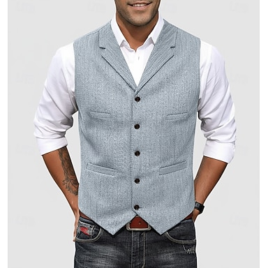 Per uomo Gilet in tweed Gilet Formale Matrimonio Vacanza Casuale Vintage Moda Primavera Autunno Tasca Bottoni Poliestere Tweed Confortevole Semplice Spina di Pesce Monopetto Scollo a V Con intaglio