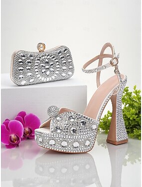 sandali da donna con tacco alto e plateau in strass con pochette abbinata - scarpe eleganti e scintillanti per cocktail party, matrimoni ed eventi eleganti