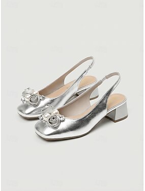 scarpe con tacco a spillo e cinturino posteriore metallizzato da donna - décolleté eleganti con fibbia di perle e tacco scolpito per feste notturne, abbigliamento da discoteca &abiti da sera