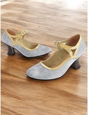 décolleté mary jane vintage anni '30 verdi e dorate da donna con fibbia di strass, comode con tacco medio, perfette per eventi formali e feste a tema retrò