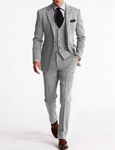 Completo da uomo in tweed a spina di pesce, 3 pezzi, vestibilità slim – completo formale vintage, blazer monopetto, gilet e pantaloni, autunno inverno, disponibile in marrone, bordeaux e blu navy.