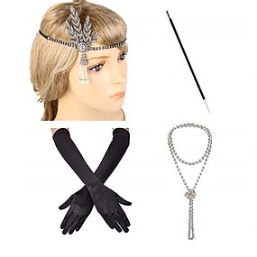Vintage Anni 1920 Il grande Gatsby Set di accessori Charleston Invitato al matrimonio Costume Per donna Mascherata Ricevimento di nozze Addio al Nubilato Festival Adulti Guanti Tutte le stagioni