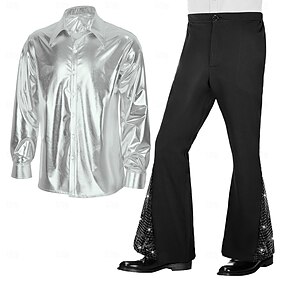 Metallico Retrò Vintage Anni '70 Abiti Camicia Pantaloni a zampa d'elefante Costume Per uomo Costume di Carnevale Halloween Carnevale Mascherata Parata dell'Orgoglio Mese dell'orgoglio Festa fantasia