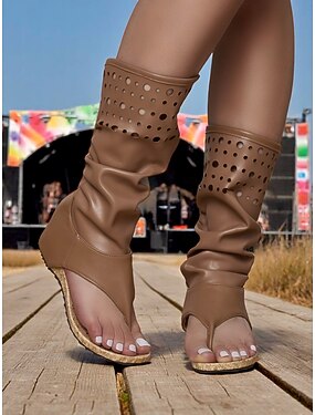 sandali da donna con tacco alto, punta aperta, design traforato e zeppa in sughero, ideali per le vacanze estive e le feste in spiaggia