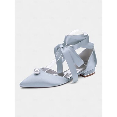 Scarpe basse da donna con punta a punta in raso blu navy - scarpe eleganti con fiocco decorato con perle per serate eleganti, matrimoni e occasioni speciali
