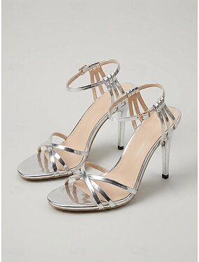 Sandali con tacco a spillo argentati da donna - scarpe eleganti e minimaliste per cocktail party