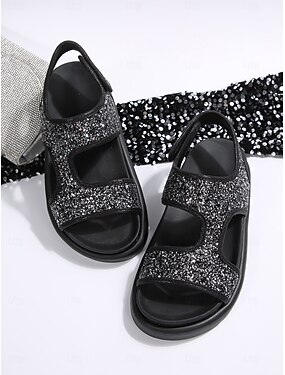 sandali con plateau e paillettes nere scintillanti da donna - scarpe da gladiatore con tacco a blocco spesso e audaci per festival musicali, outfit da Coachella e rave in discoteca