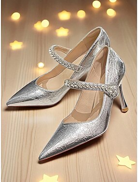 Scarpe eleganti da donna con tacco a spillo e glitter argento, scarpe eleganti a punta per appuntamenti di San Valentino