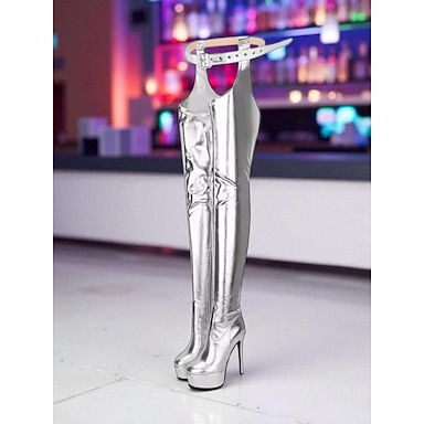 stivali alti fino alla coscia in argento da donna - stivali con tacco alto sopra il ginocchio in metallo lucido, calzature sexy da festa e da discoteca per la sera &eventi festivi