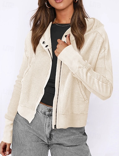 Per donna Felpa con cappuccio Giacca da esterno Sport in alto Tasca con cerniera Manica Lunga Top Athleisure Autunno Tinta unita Calore Termico Antivento Assorbi umidità Tennis Golf Corsa