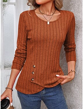 Per donna maglietta Liscio Di tendenza Moderno Informale Manica lunga Collo dentellato Top regolari Giornaliero Fine settimana Rosa Arancione Verde Autunno Inverno