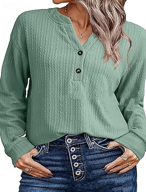 Per donna Felpa Maglione Streetwear Casual Tinta unica A Coste Girocollo Bottoni Lavorato a maglia Manica Lunga Top Regolari Maglia Quotidiano Ferie Weekend Nero Verde militare Autunno Inverno