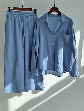 Per donna Camicia Set ispirati al lino Set da due pezzi Pantaloni di Lino Pantaloni Manica Lunga Colletto a Camicia Tinta unica Coulisse Moda Streetwear Abbigliamento quotidiano Data Blu Rosa Grigio