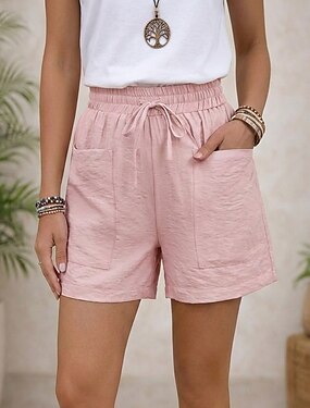 Per donna Misto lino Shorts Pantaloncini Estivi Vacanza Moda Streetwear Corto Vita Alta Tinta unica Semplice Tasca Fascia Elastica Comodo Comodità Morbido Inelastico All'aperto Streetwear