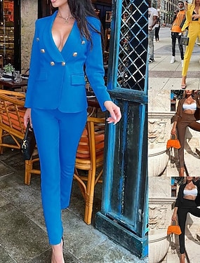 Per donna Set di Pantaloni Blazer Abiti Manica Lunga Colletto a Camicia Semplice Dubbele Rij Knopen Attivo Moda Vacanza Casual Quotidiano Nero Bianco Giallo Autunno Vestibilità regolare