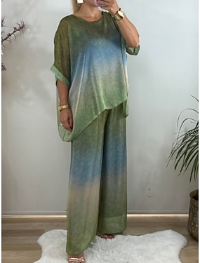 Per donna Set di Pantaloni Manica 3/4 Girocollo Sfumatura Moda Streetwear Casuale Quotidiano All'aperto Blu Marrone Verde Estate Vestibilità regolare