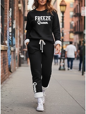 Per donna Caldo Quotidiano Set da due pezzi Tuta Set di Pantaloni Manica Lunga Girocollo Grafico Lettera Coulisse Stampato Casuale Quotidiano Nero Rosa Blu Autunno Vestibilità regolare