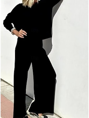 Per donna Blusa Set di Pantaloni Manica Lunga Girocollo Tinta unica Attivo Streetwear Uscire Casual Quotidiano Nero Marrone Verde Autunno Vestibilità regolare