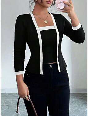 Per donna Set di Pantaloni Bolero Top Manica Lunga Colletto a Camicia Tinta unica Patchwork Elegante Moda Streetwear Casuale Quotidiano All'aperto Blu Marron Nero Primavera Vestibilità regolare