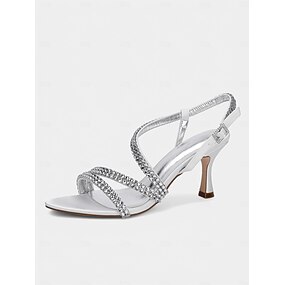 sandali da donna con cinturino posteriore argentato e dettagli in strass – tacchi a gattino aperti e scintillanti per cocktail serali e ricevimenti nuziali