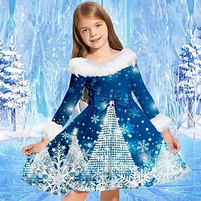 Natale ragazze' 3D Grafico Albero di Natale Fiocco di neve Abito Manica Lunga Primavera Autunno Vacanza Quotidiano Ferie Bello Dolce Bambini 4-12 Anni Vestito da Festa Abito a trapezio Lunghezza al