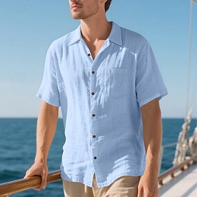 Per uomo Camicia Camicia di lino Camicia Guayabera Camicia Estiva Camicia da Spiaggia Vacanza Casuale Bianco Verde Azzurro Manica Corta Colletto Estate Primavera Abbigliamento