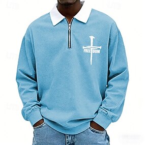 Per uomo Magliette Polo a Nido d'Ape Testurizzato Casuale Sport & Outdoor Zip a un quarto Manica Lunga Moda Confortevole Con zip Tasca Autunno Primavera & Autunno Interstagionale Vestibilità comoda