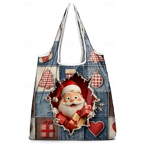 Borsa pieghevole per la spesa natalizia da donna - molteplici disegni di Babbo Natale, materiale in poliestere, resistente e compatta, perfetta per lo shopping natalizio e per i regali