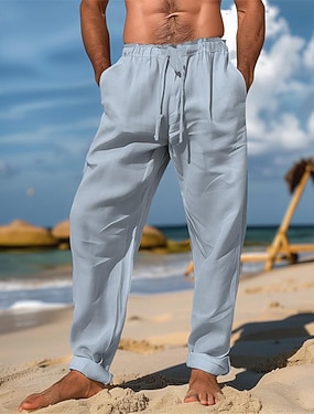 Per uomo Pantaloni di Lino Pantaloni Pantaloni Estivi Pantaloni da Spiaggia Tasca Semplice Comodità Traspirante Vacanza Quotidiano Ferie Hawaiano Boho Bianco Azzurro cielo