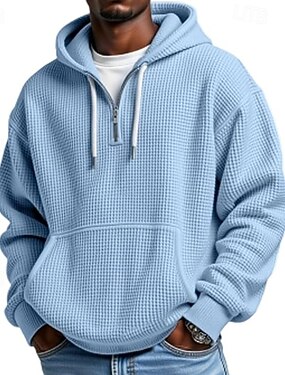 Per uomo Felpa con cappuccio Felpa con cappuccio a nido d'ape Felpa con cappuccio e zip corta Aalbicocca Bianco Verde chiaro Verde militare Rosso Con Cappuccio Semplice Tasca a marsupio Testurizzato