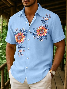 Per uomo Camicia Camicia di lino Camicia Estiva Camicia da Spiaggia Camicia con Bottoni Floreale Casuale Ferie Giallo Rosa Blu marino Verde Manica Corta Collo ripiegato Estate Abbigliamento Tasca