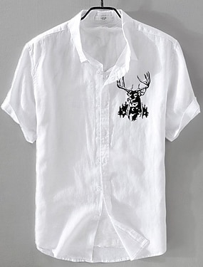 Per uomo Camicia di lino Camicia casual Camicia in cotone e lino Camicia con Bottoni Con Motivo Animale Vacanza Abbigliamento quotidiano Bianco Blu marino scuro Azzurro cielo Cachi Manica Corta Bavero