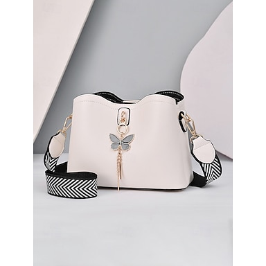 Borsa a tracolla da donna in similpelle con tracolla regolabile, ciondolo a forma di farfalla, borsetta chic e casual multicolore per l'uso quotidiano, per andare in ufficio e per le vacanze.