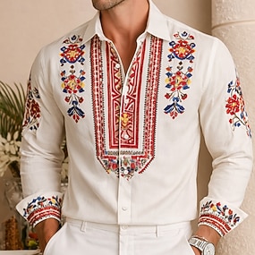 Per uomo Etnico Floreale intricato Fiori Camicia Camicia con Bottoni Manica Lunga Vintage Retrò Casuale All'aperto Ferie Primavera Autunno Collo ripiegato Stampa 3D Camicia tipo lino Blu Viola Verde