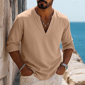 Per uomo Camicia Camicia estiva Maglietta informale Camicia da spiaggia Nero Blu marino Kaki Beige Azzurro Manica lunga Liscio A V Per eventi Da mare Abbigliamento Di tendenza Informale Comodo