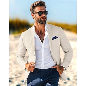 Per uomo Blazer in lino Blazer Affari Cocktail party Ricevimento di matrimonio Moda Casual Primavera & Autunno Poliestere Lino Semplice Tasca Bottoni Confortevole Monopetto Giacca Bianco Kaki Beige