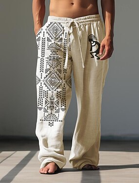 Per uomo Grafico Stella Totem Pantaloni di Lino Pantaloni Pantaloni Larghi Misura del girovita medio Casual Vacanza Abbigliamento quotidiano Uscire Primavera Autunno Nero Blu Verde