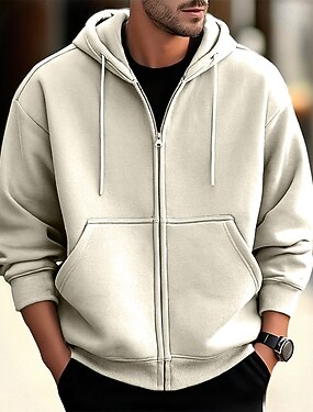 Per uomo Felpa con cappuccio Felpa con cappuccio a zip intera Aalbicocca Grigio 2 # Nero Bianco Vino Con Cappuccio Semplice Con zip Tasca Sport & Outdoor Quotidiano Ferie Poliestere Streetwear