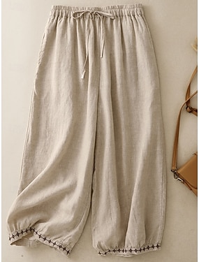 Per donna Finto cotone e lino Pantaloni Pantaloni Estivi Pantaloni Larghi Vacanza Vintage Essenziale Lunghezza intera Vita Alta Semplice Coulisse Tasca Gamba larga Comodità All'aperto Elasticizzato