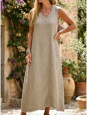 Per donna Abito Midi Abiti in cotone e lino Abito a Tubino Vestito Estivo Vestito Canotta Moda Moderno Quotidiano All'aperto Ferie Vestibilità comoda Semplice Senza Maniche Scollo a V Blu Rosa Beige