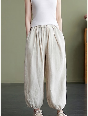 Per donna Finto cotone e lino Pantaloni Pantaloni Estivi Pantaloni Larghi Vacanza Essenziale Casual Lunghezza alla caviglia Vita Alta Semplice Tasca Fascia Elastica Comodità Morbido Traspirante
