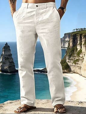 Per uomo Pantaloni di lino Pantaloni estivi Pantaloni da spiaggia A cordoncino Vita elastica Gamba con zip Liscio Comfort Traspirante Informale Giornaliero Per eventi Di tendenza Classico Nero Bianco