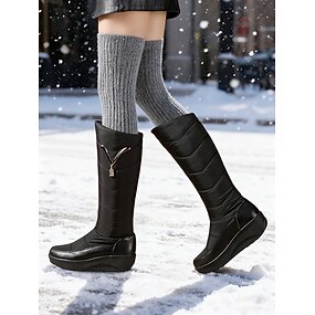 stivali invernali impermeabili neri da donna - modello imbottito trapuntato, tacco a zeppa con plateau, caldi ed eleganti per il tempo nevoso e le attività all'aperto