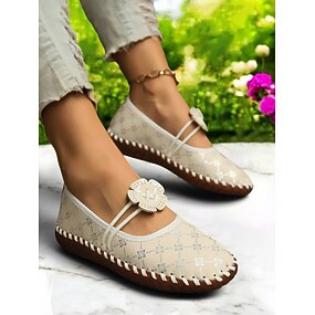 ballerine Mary Jane in maglia beige da donna con cinturino in perle - scarpe casual leggere e traspiranti da indossare tutti i giorni, in viaggio e per l'ufficio