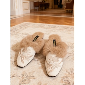 pantofole da casa da donna color cammello, muli con rifiniture in pelliccia – zoccoli caldi e morbidi da infilare per la camera da letto, il relax in casa e la spa domestica