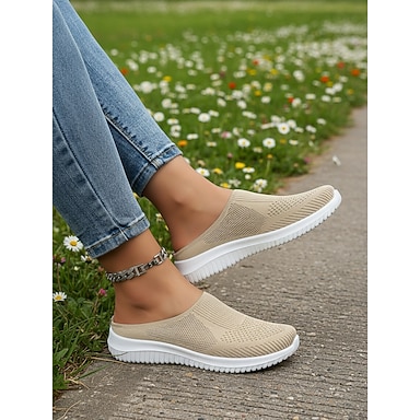 sneakers da donna beige Flyknit slip-on comfort – scarpe da passeggio leggere e traspiranti per il parco, le commissioni e l'uso quotidiano