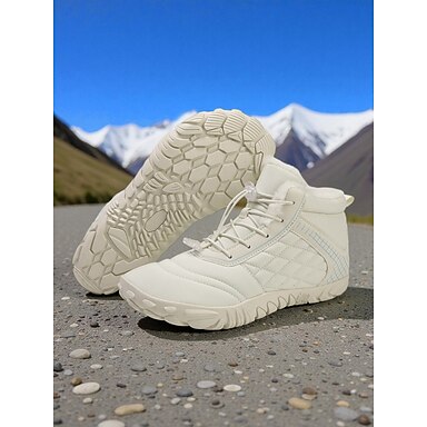 stivali da neve invernali beige da donna – scarpe da trekking calde foderate in pile con cinturini in velcro per climi freddi, gite sugli sci e trekking