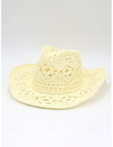 Cappello da cowboy western da uomo in paglia, disponibile in vari colori, cappello estivo intrecciato per vacanze al mare, outfit in stile western, abbigliamento da resort e feste estive.