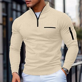 Per uomo Magliette Polo a Nido d'Ape Testurizzato All'aperto Casual Zip a un quarto Manica Lunga Moda Moderno Tinta unica Lavorato a maglia Primavera & Autunno Vestibilità standard Beige Magliette