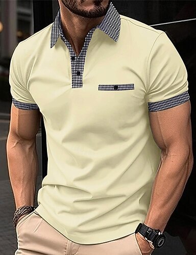 Per uomo Maglia da golf Polo da Golf Lavoro Casuale Bavero Manica Corta Essenziale Moderno Blocco di colori Pied-de-poule Patchwork Primavera & Estate Vestibilità regolare Nero Bianco Rosso Blu